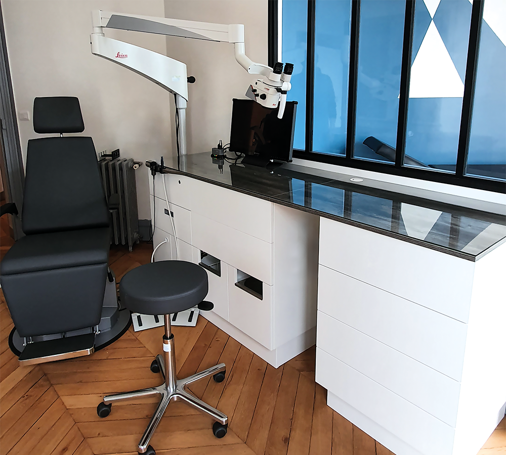 ○ 1 compartiment avec bac pour instruments usagés, facilement accessible.